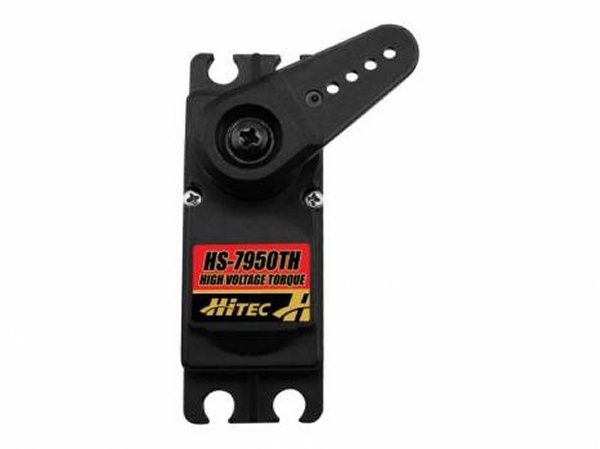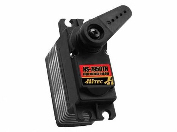 Hitec's strongest servo period, the "Ultra Torque" HS-7950TH is designed to operate on a two cell LiPo Pack. Featuring our high resolution "G2" second generation programmable digital circuit and our indestructible Titanium gears, the HS-7950TH has the performance and durability you've come to expect from a Hitec servo. Other features in the HS-7950TH include a 7.4V optimized coreless motor, integrated heat sink case, and a top case with two hardened steel gear pins supported by axial brass bushing.